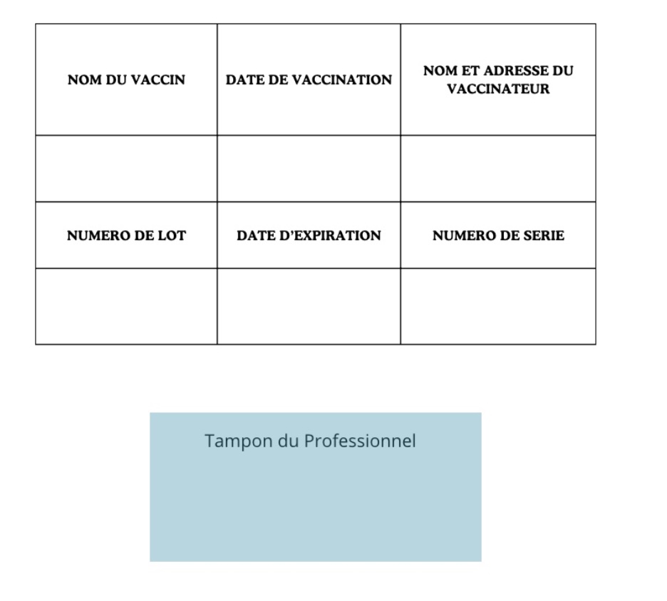 Ici le professionnel de santé pourra inscrire toutes les informations légales pour la traçabilités de votre vaccination